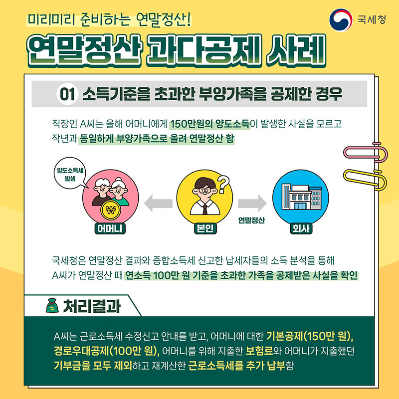 - 과다공제로 인해 세금을 적게 낸 경우, 추가 납부가 필요합니다.